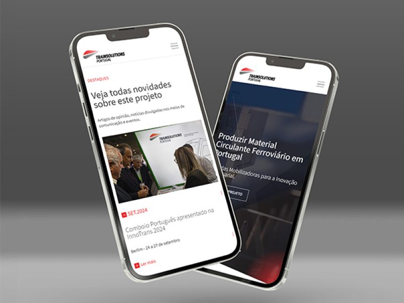Le site trainsolutions.pt a été conçu comme le point de contact principal avec le public. Structuré de manière claire, avec une navigation intuitive, il présente les domaines clés du projet, le consortium, les partenaires, les actualités et une galerie multimédia.